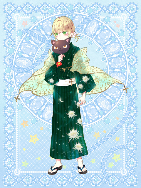 水着コン参加はキャラらしくないなあ、と悩みました……が、こんな素敵な浴衣をいただけると、よかったという感想しか持てません。ホシ様、本当にありがとうございました!