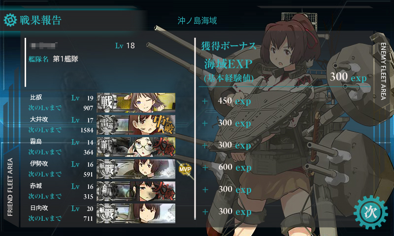 2番目に来てくれた戦艦ヒエーちゃんが可愛くて秘書にしています。大井さんも好き。ここにはいないけど利根と摩耶も好きです。
